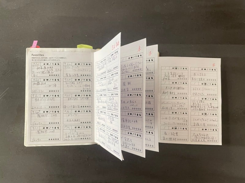 I also decided to use the Favorites page to record plays, rakugo performances, and various events. Four pages come standard. I added ten more.