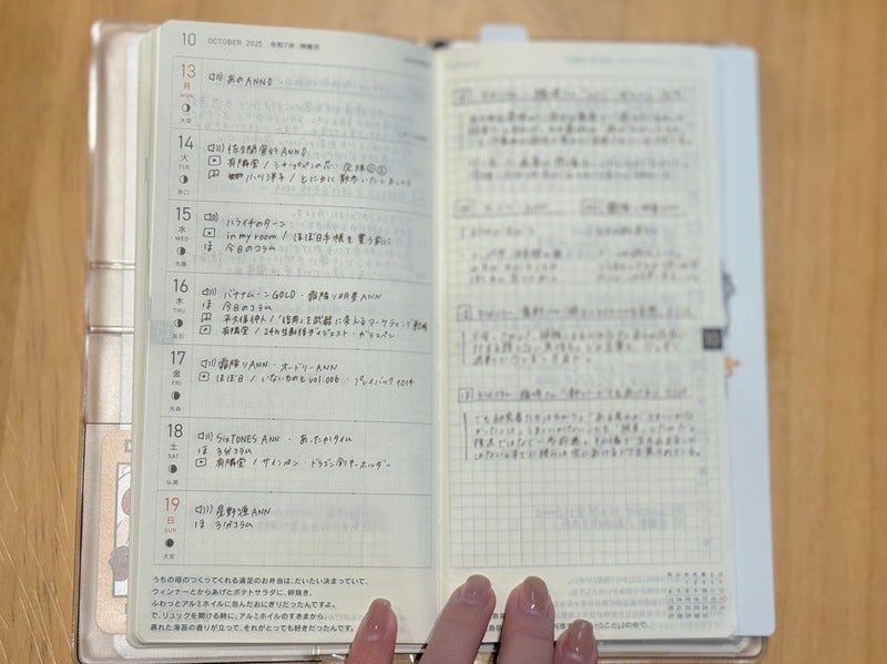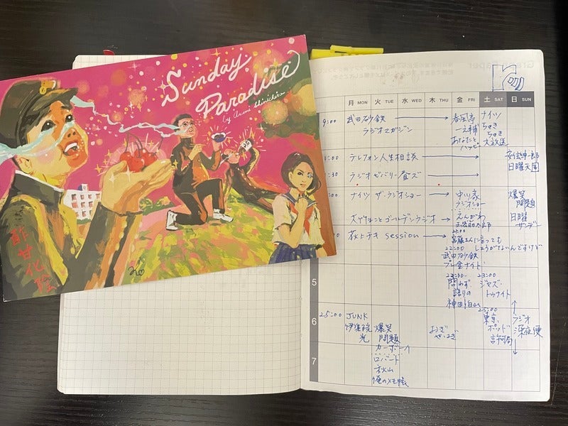 On the Time Table pages, I started recording my radio listening schedule—specifically, how much time I spend listening via radiko. Written in FriXion pen so I can update it when programs change.