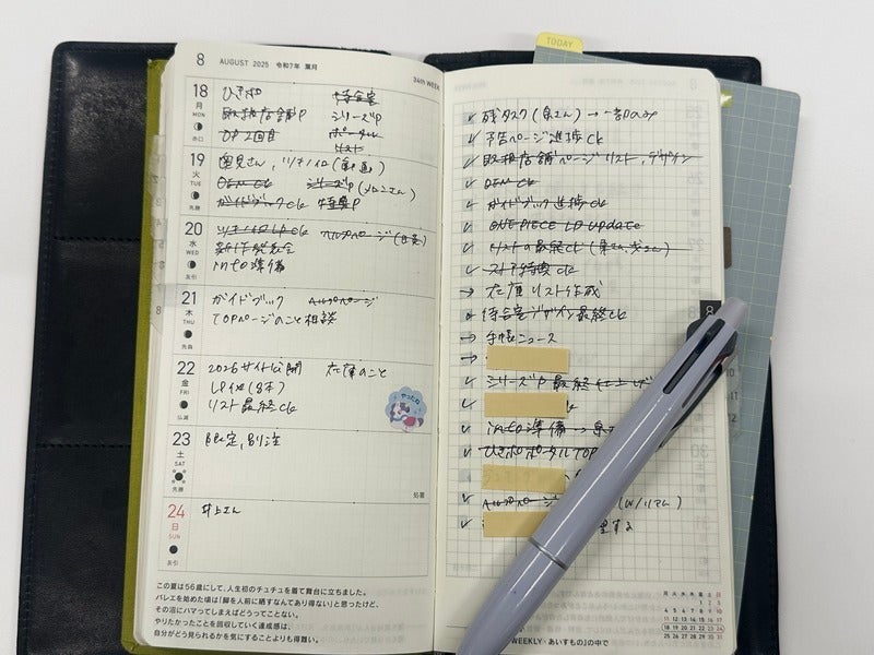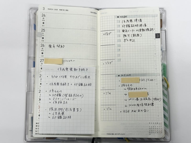 I tried pasting the cut paper into my Hobonichi Techo and writing down my schedule and to-do list. It gives the page a completely different feel—it's so fresh! I want to keep finding more ways to put them to work from now on.