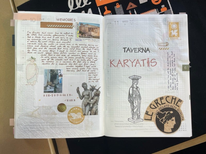 Looking at pages lined with illustrations and paper ephemera collected during travels really brings those memories back to life, doesnft it?