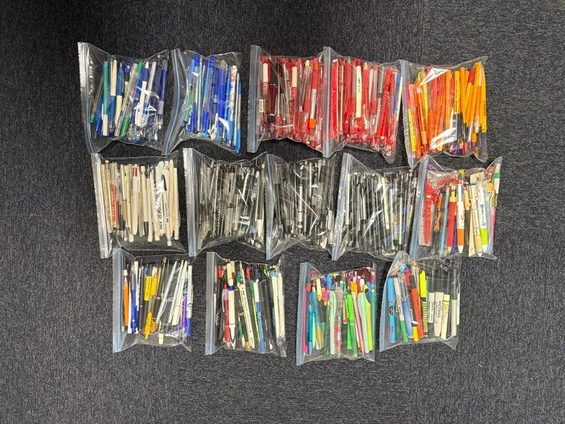 I tried lining up the various pens Ifve collected over the years.