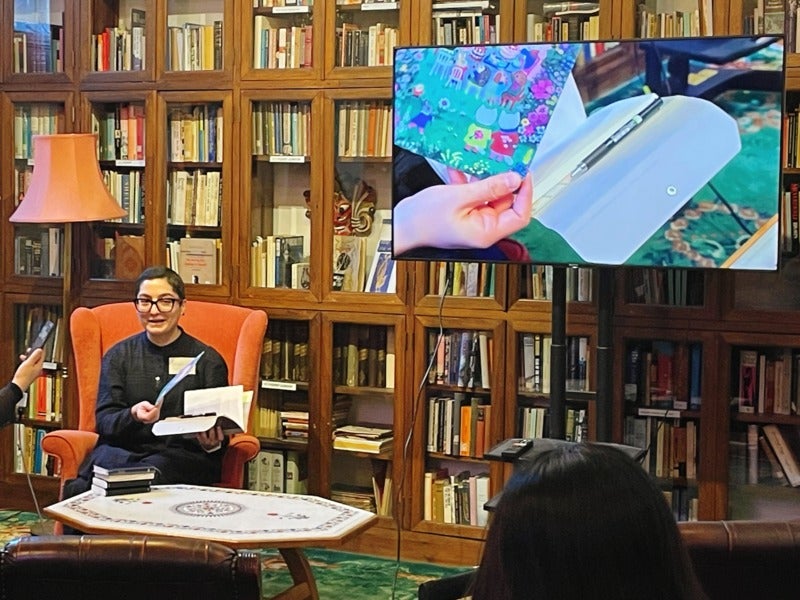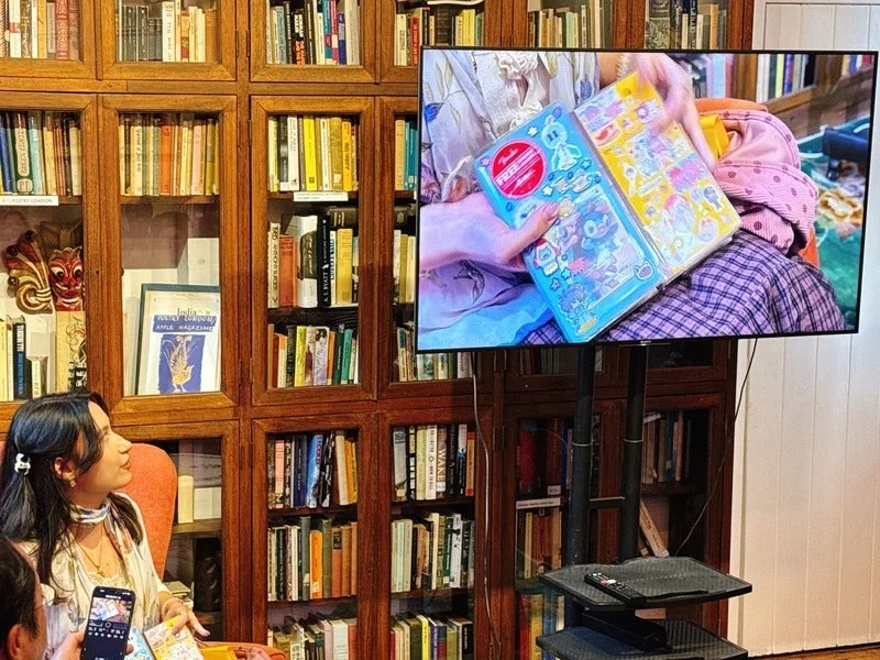 We hosted two sessions—one in the morning and one in the afternoon—with a total of ten people joining us. To start things off, I gave a little introduction to Hobonichi using a special gKamishibaih (storytelling cards) that Ifd made.