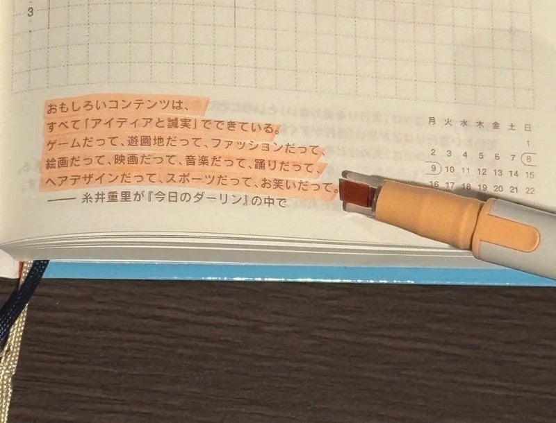 Itfs easy to draw clean, straight lines, and the ink dries instantly. This is a big plus because it doesn't smudge the pages, and the lines don't feel out of place when I read them back later. (Showing my actual highlighted books is a bit embarrassing, so Ifve demonstrated on the techo's daily quotes instead...)