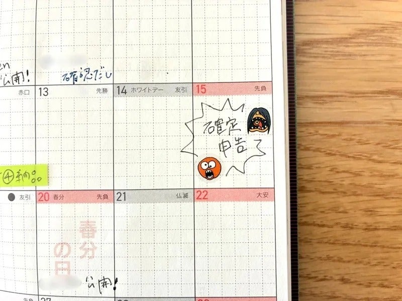 An important date* for a freelancer like me. I wrote it in my techo a day early (a small lesson learned!). *Calendar's text reads: tax return