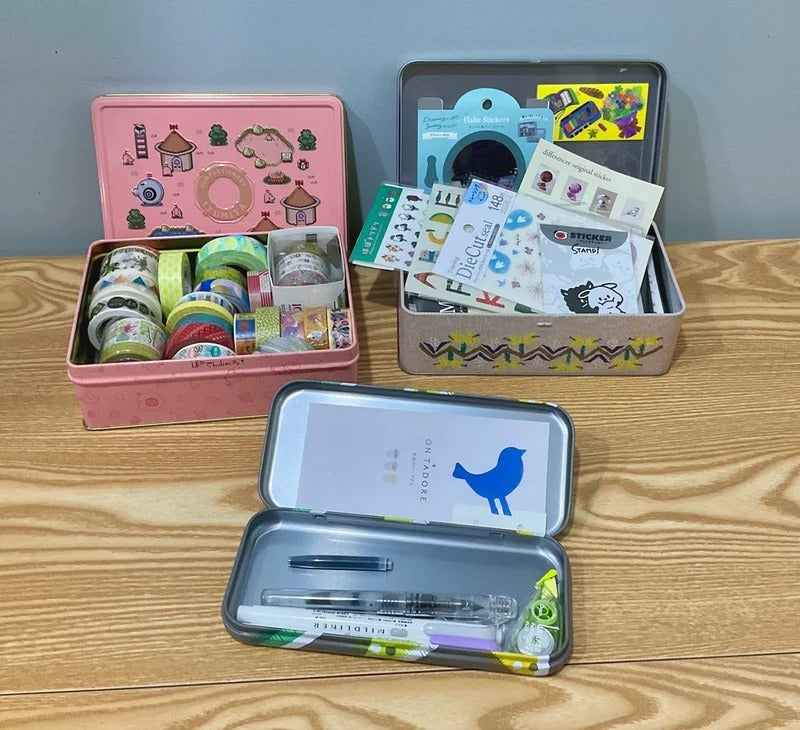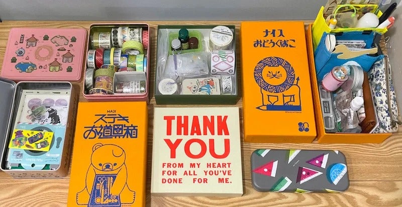 These are my tool boxes from home. They were originally packaging for snacks and tea. Let me introduce my eEmpty Boxf series.