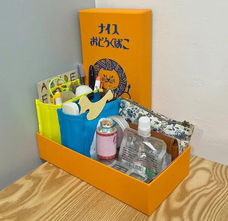 This somewhat somber orange and the heartwarming, simple illustration... Ifm sure many of you find this quite nostalgic. When I was in elementary school, everyone used to have a tool box just like this tucked inside their desks.
