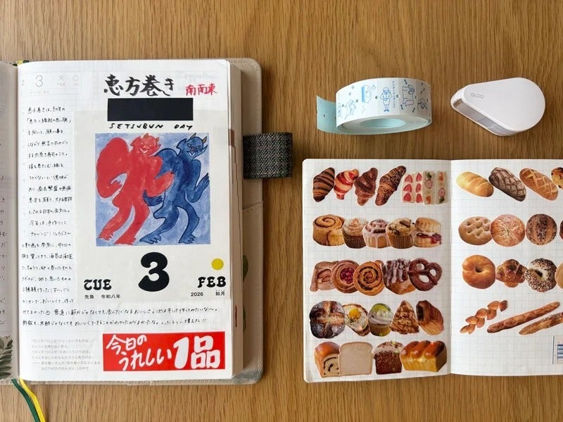 Hello, Ifm Ogawa from the sales team! I stick a lot of ephemera in my techo, so egluef is an essential part of my techo time. Today, Ifd like to introduce two types of glue that have been my trusty companion items in my 2026 techo.