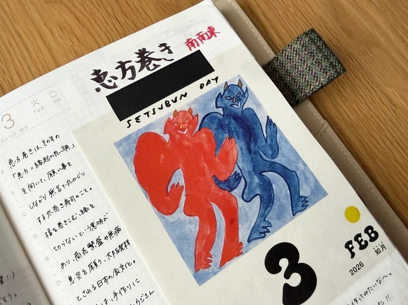 Setsubun featured cute oni. Since it was a day I wrote about Ehomaki sushi rolls, I used black washi tape to give it a gseaweed-like feel.h