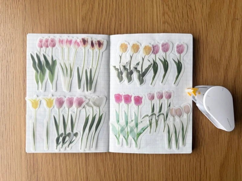 When decorating my techo or notebook, I used to struggle when trying to arrange ephemera in a freeform layout. The impression totally changes depending on the slight angles, yet once you stick something down, you canft easily peel them off. Getting it right on the first try is surprisingly difficult. Since this tape glue is repositionable, the best part is being able to adjust the placement later. I can refine the position after seeing the result, gradually getting closer to my ideal layout.