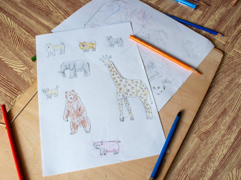 He decided to turn animals he drew out of an encyclopedia with his children into stickers.