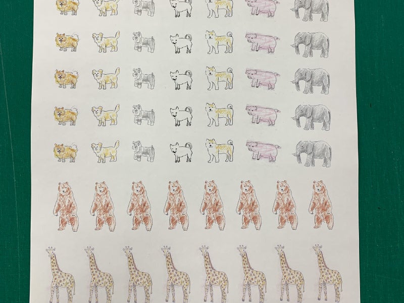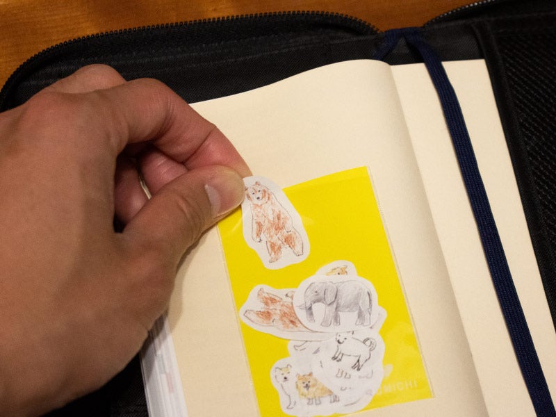 He lines up the scanned animals once shrinking them down in size, and prints them out on an A4 sized printable sticker paper. (Iwakuro used the A-one label seal in Matte white.)