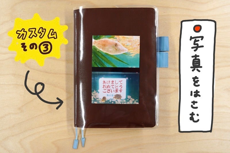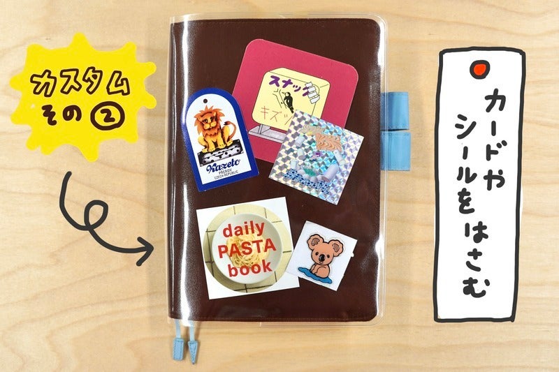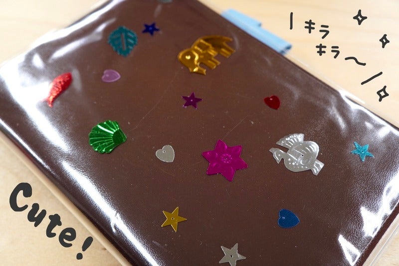 By putting on a Cover on Cover, you can slip things in between the cover, so you can customize it as freely as you like. I have a habit of collecting things, so I have a bunch of cards and stickers. Slipping them in between the cover at random makes it look nice.