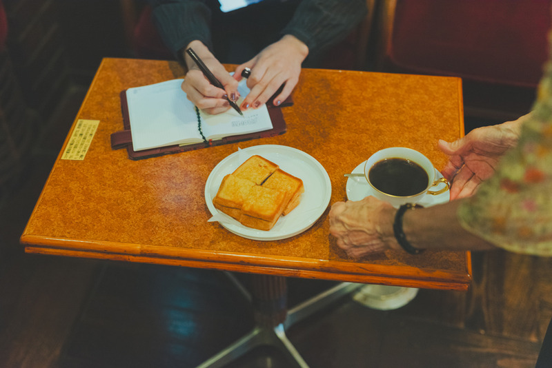 Chief Nobuhiro Sasaki, who makes coffees and light meals, has worked here for 49 years.