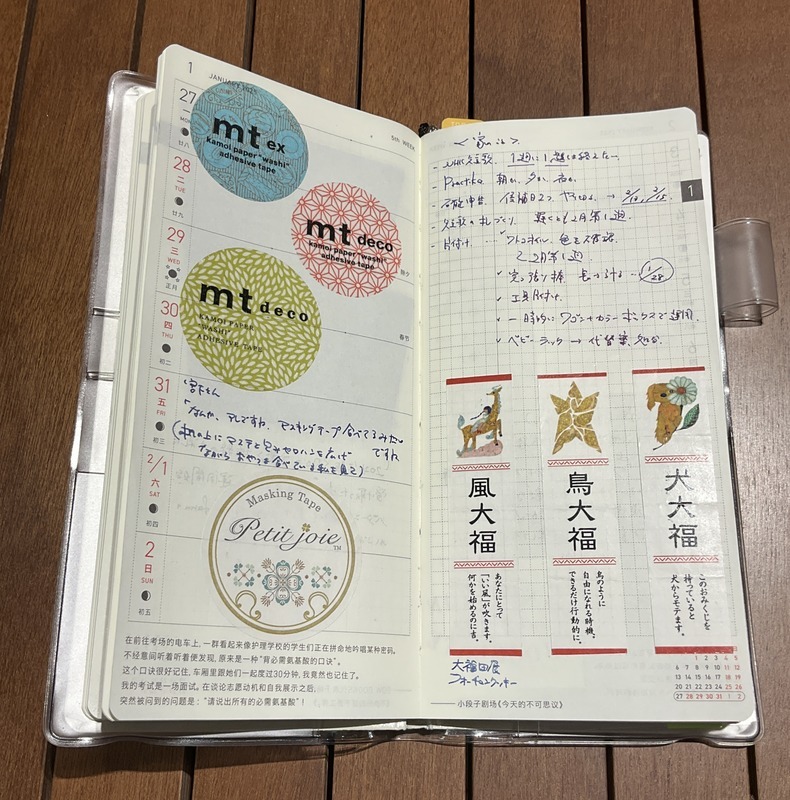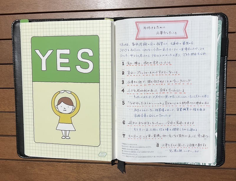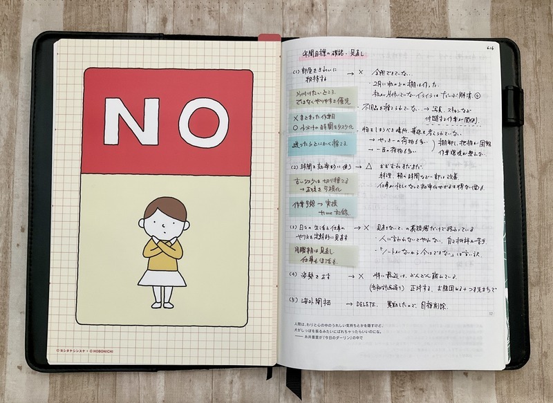 Since the Day-Free doesnft have a fixed format and continues with graph pages, I used the TSUKI no IRO Sticky Notes (Frame) to create headings. Trying to plan in detail, writing things like gsteps to become someone who cleans," didnft work for me.