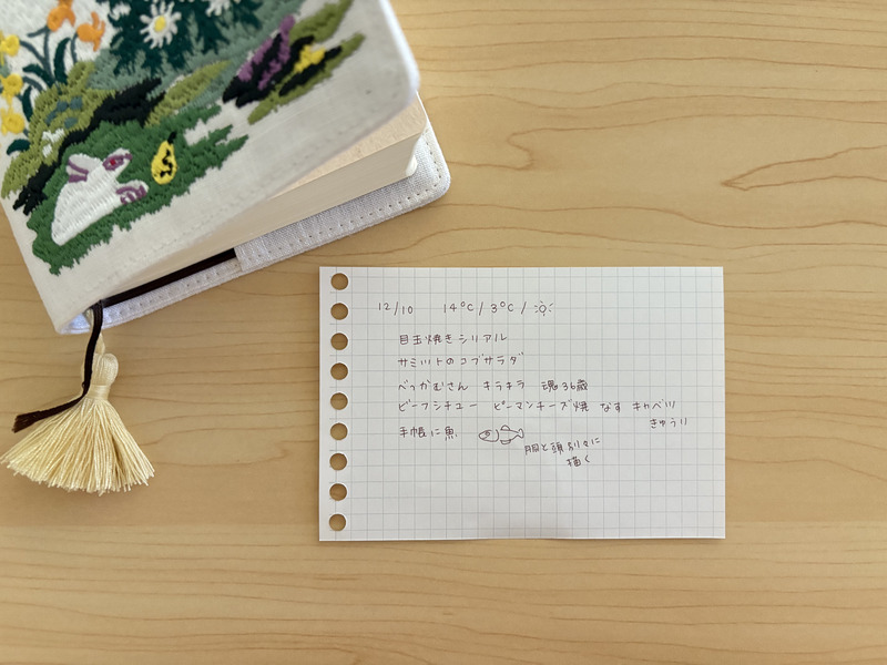 Starting this year, I decided in advance that I would always write the dayfs weather, temperature, and what I ate. Having that baseline made it much easier to turn writing into a habit. This is how I write the weather and temperature.