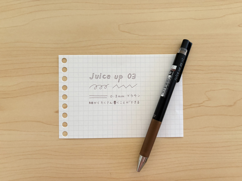 This year, I used the same pen throughout: a Juice Up 0.38mm in brown. Quietly satisfying: finishing a pen completely.