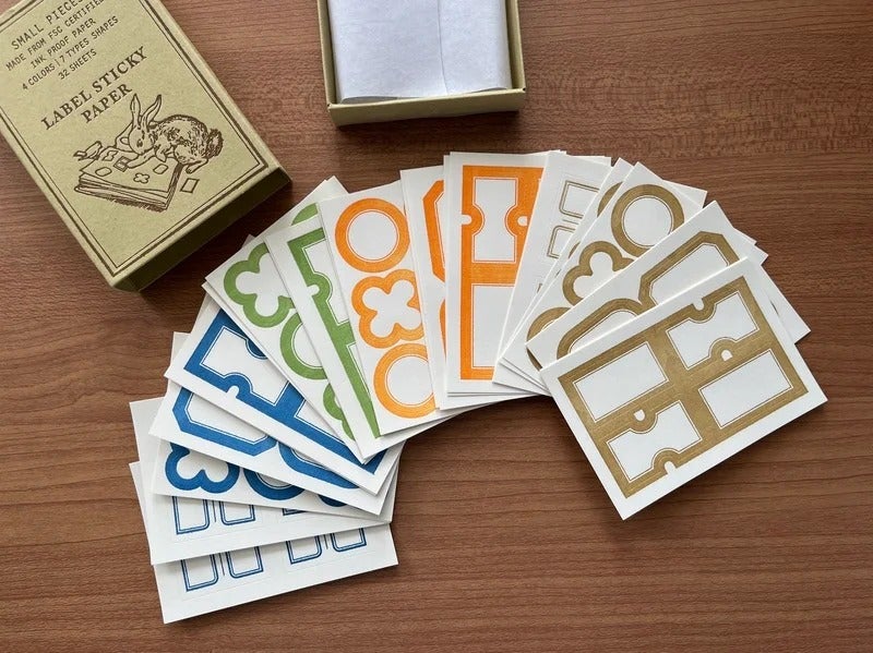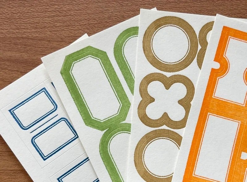 The boxed label stickers come in a huge variety of colors and designs. While there are vibrant oranges and greens, they have a slightly muted, dusty quality—a sort of retro feel that I find really appealing.