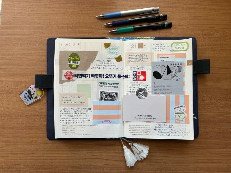 Ifm obsessed with this washi tape! Itfs just like the skin of a kiwi! I was able to buy all sorts of stationery, which made my trip that much more fun. Thatfs why I decided to make a scrapbook full of them to remember my trip.