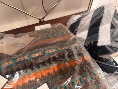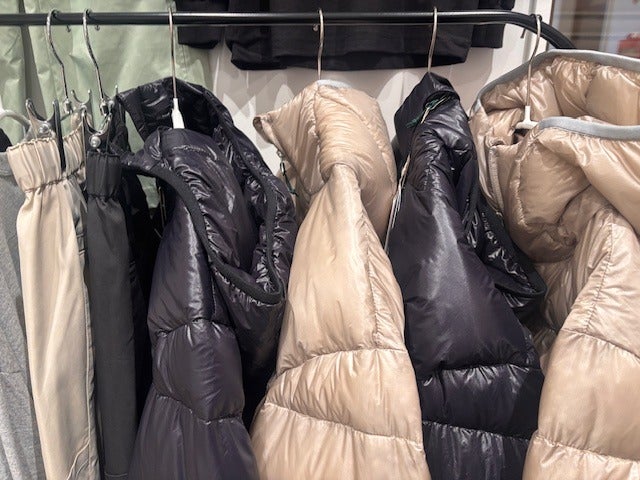 ダウンジャケットにパンツ! 毛糸のセーター!