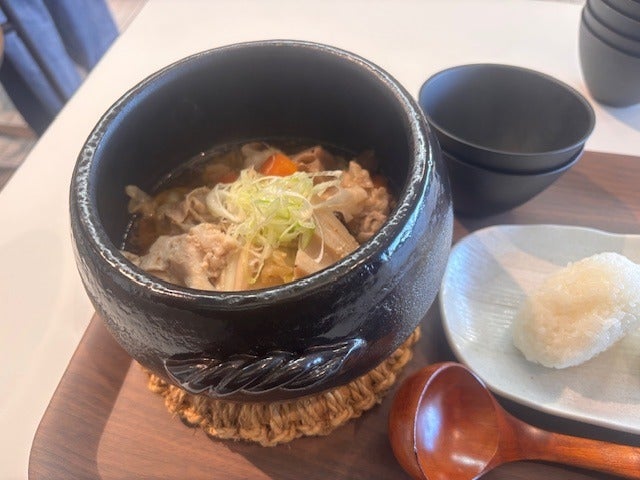土鍋でお出しする豚汁やおにぎりなど、