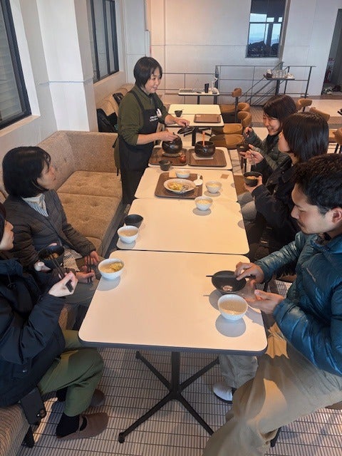 豚汁のおいしさをみんなで味見。