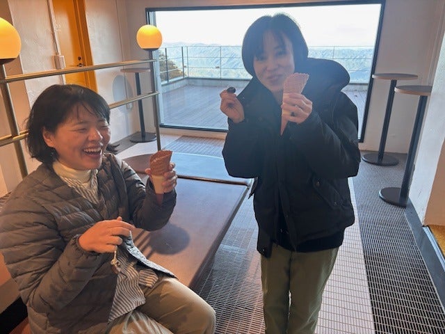 「あかぎのソフトクリーム食べてまーす」