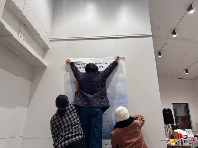 ご挨拶ポスターを貼付中。