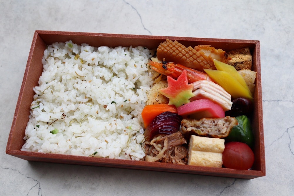 美しいお弁当はまるで玉手箱のようで具だくさん。