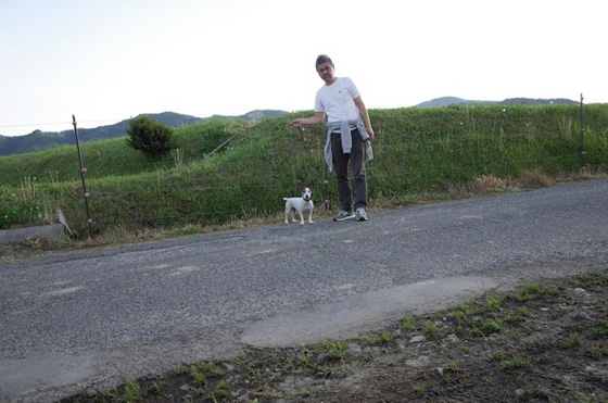 「劇団セルフタイマー」の巡業公演。 田や畑のまんなかでの新作は、 『田園と犬』です。 めずらしく女優の正面が見られます。 演出の意図にはなかったものです。