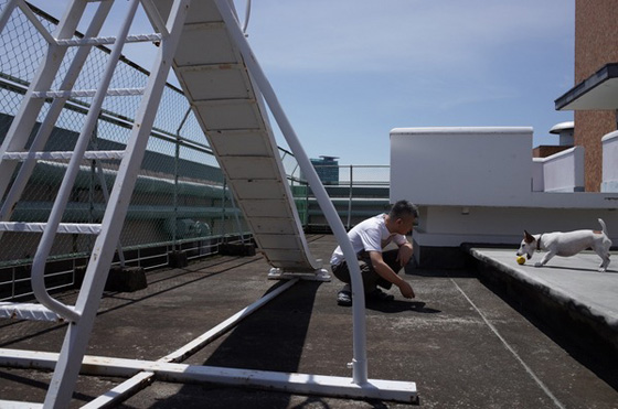 「劇団セルフタイマー」日曜公演。 クライマックスの場面です。 「この球はお渡しします」と、 犬に扮した女優が、 人間界の王さまと和解するシーン。 「さぁ、行こう」 ‥‥次のセリフです。