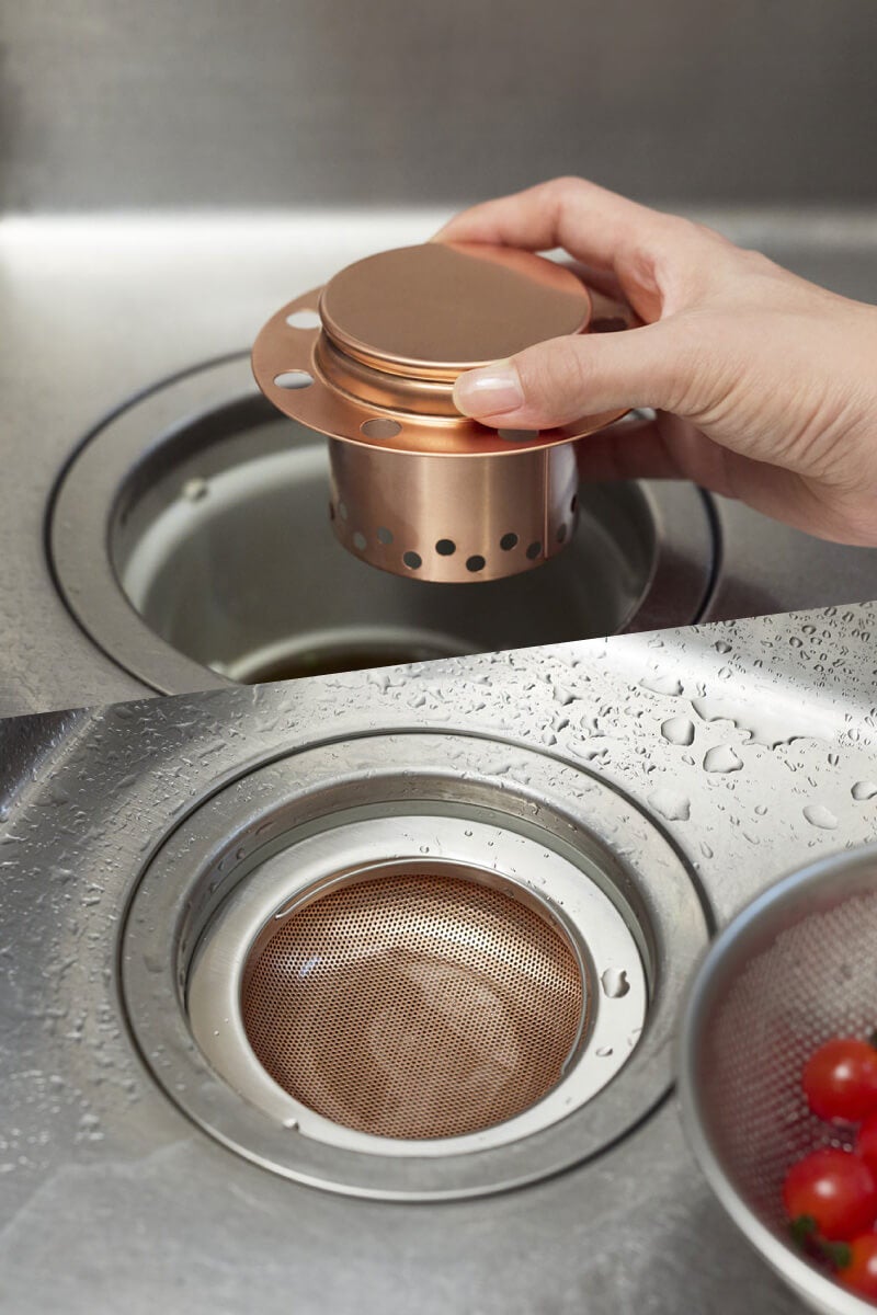 銅の排水口ゴミ受けとトラップ