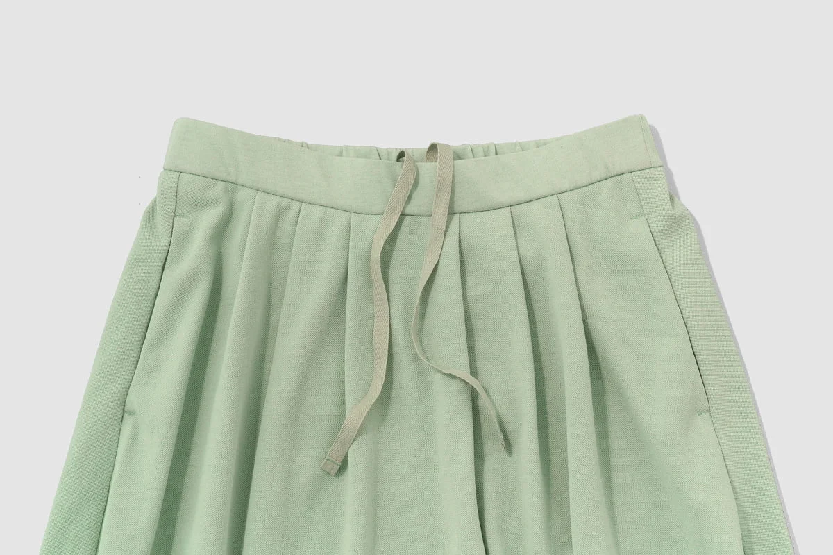 ―― 長さちがいで2サイズつくりましたが、 体型が細めの方だと ずり落ちてしまうという声もいただいたので、 ウエスト内側に紐をつけました。