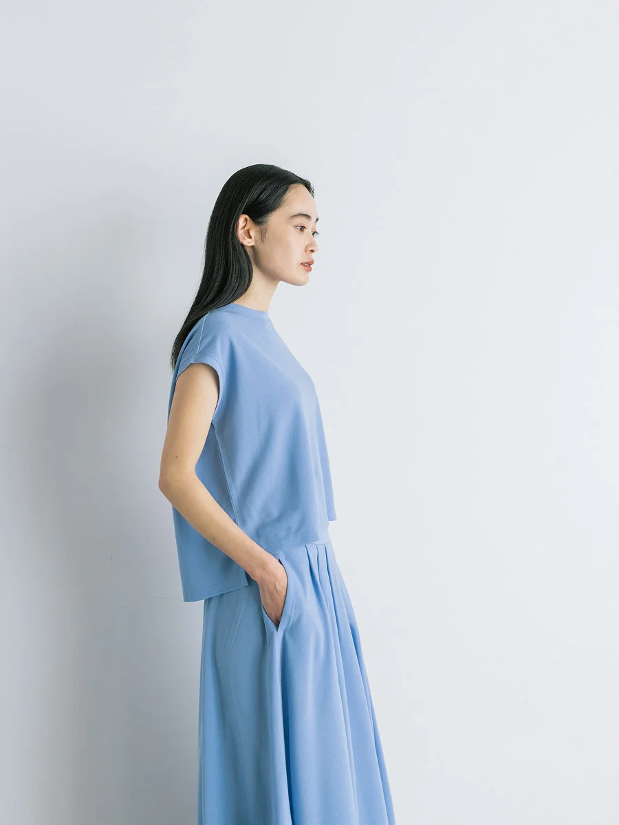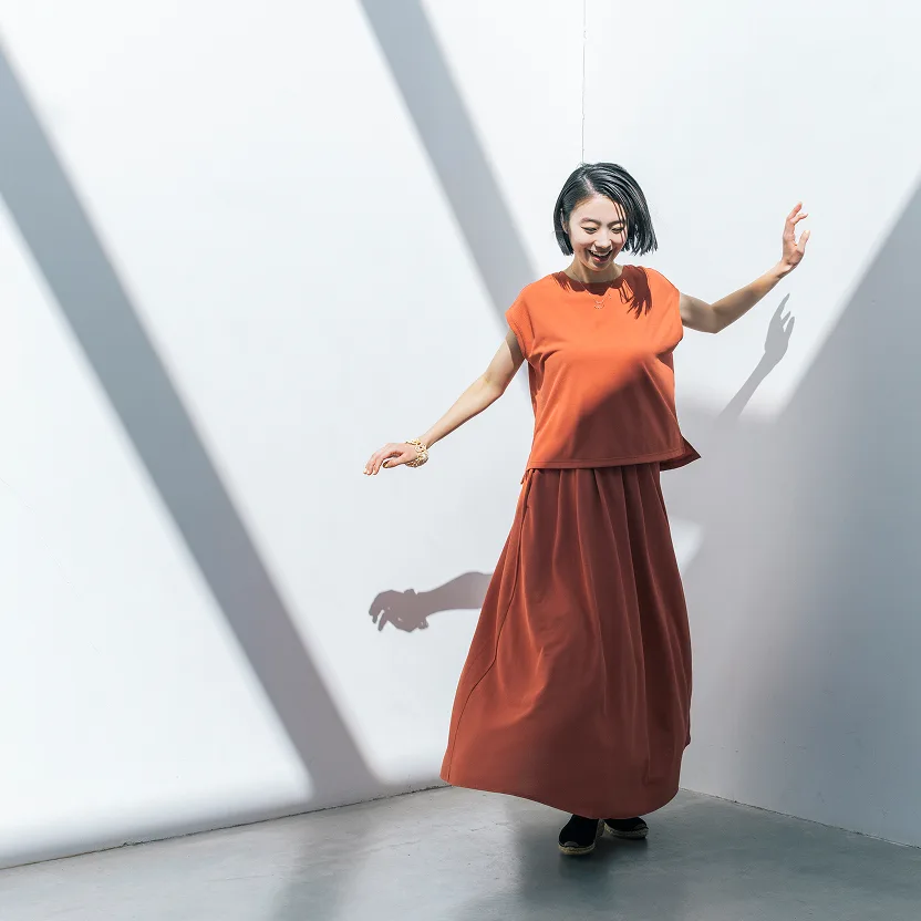 末永 まず、単品使いもしやすいよう、 トップスは後ろ側を長くして前後差をつけて 脇にスリットを入れました。