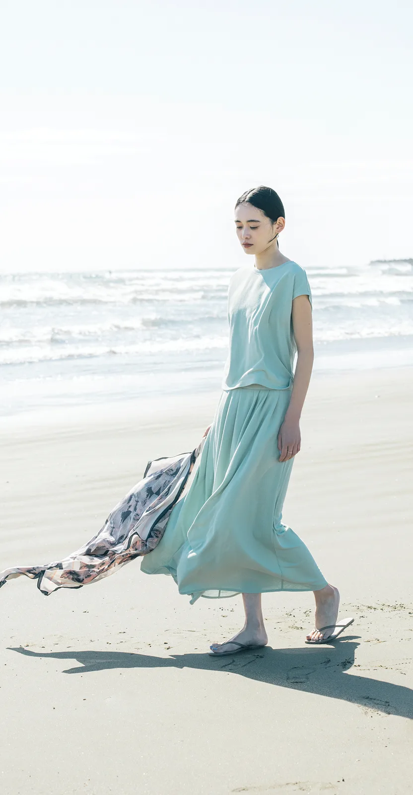 末永 上下ふたつあると着まわしの幅も広がって、 下に別のパンツを合わせてもらってもいいし、 トップスだけ変えたり、もちろんセットアップでもいいし。 荷物が限られる旅行で本当に役立つので、 おともにしていただけたらうれしいです。
