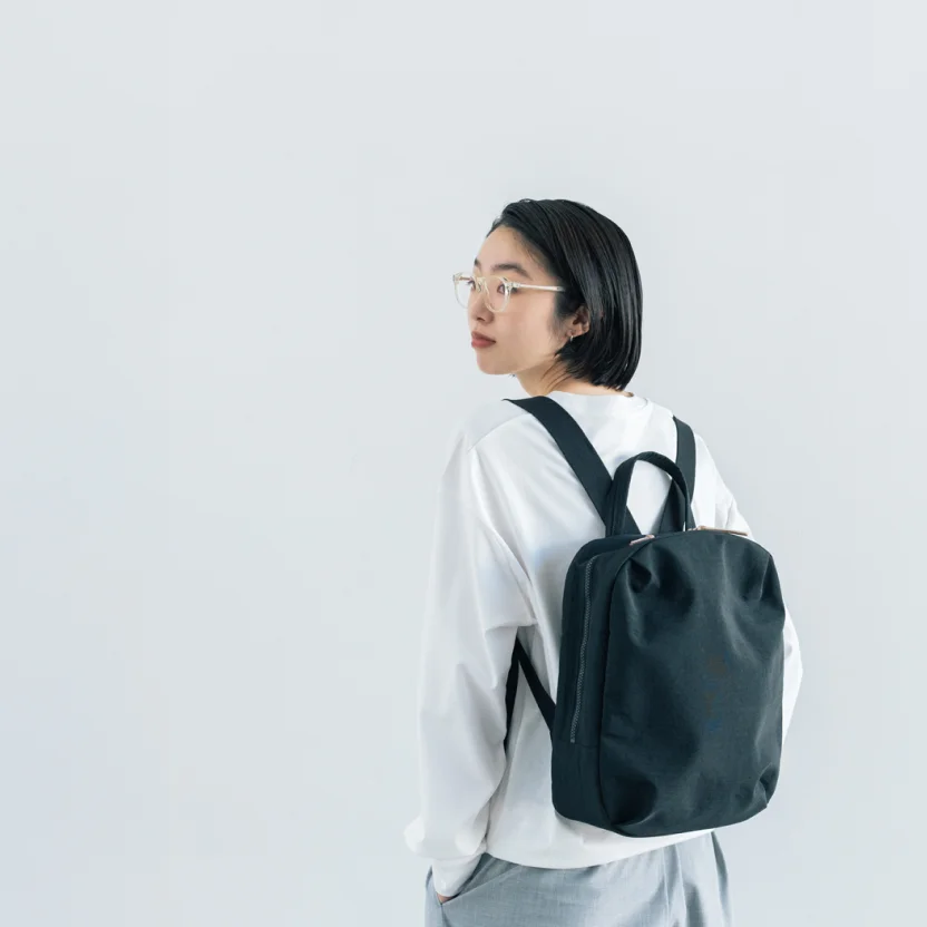 英知 M・Lサイズも多くの方に 愛用していただいているのですが、 もう少し小さなサイズを求められている お客様も多くいらっしゃったのと、 自分の経験からもほとんど荷物を持たないで でかけることもあったので、 ふだんの生活の中で使い分けられたらいいなと 思ったのがきっかけでした。