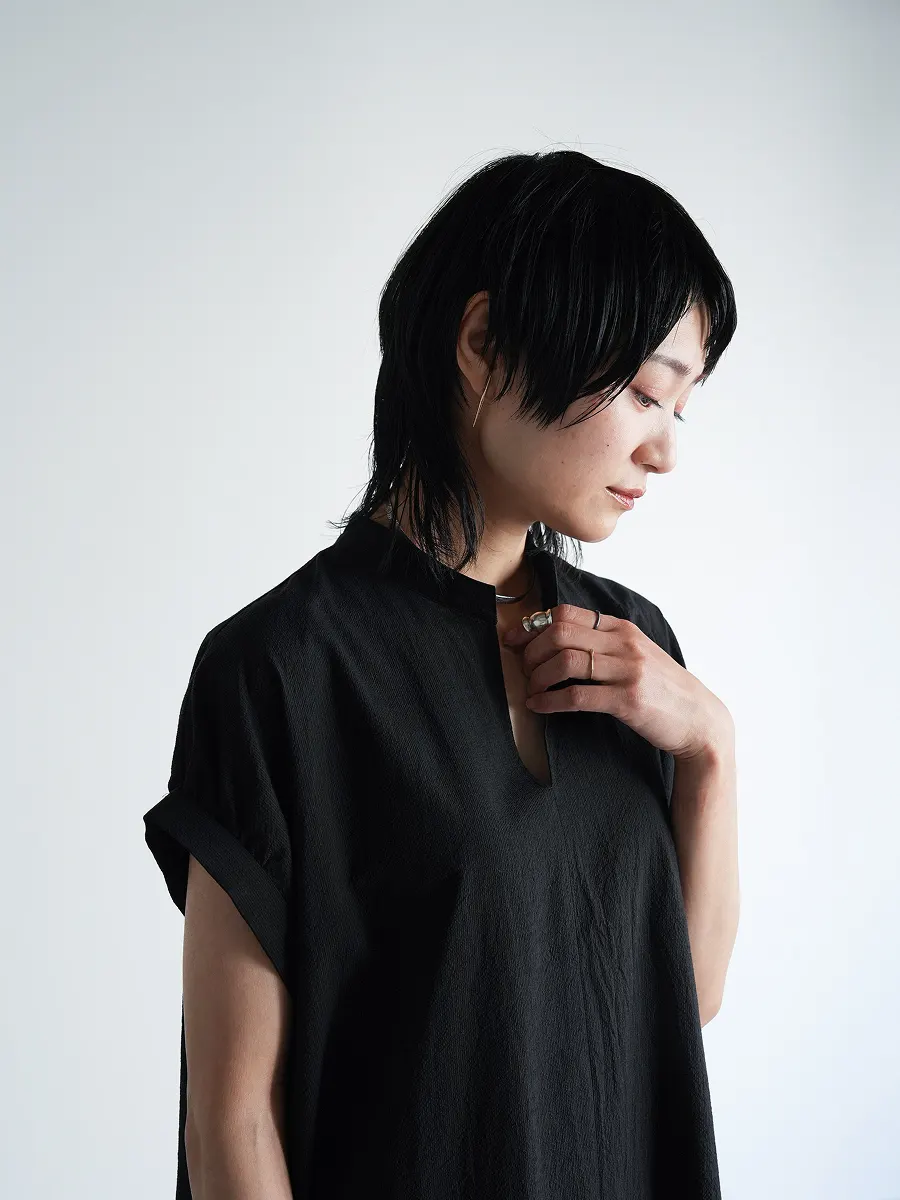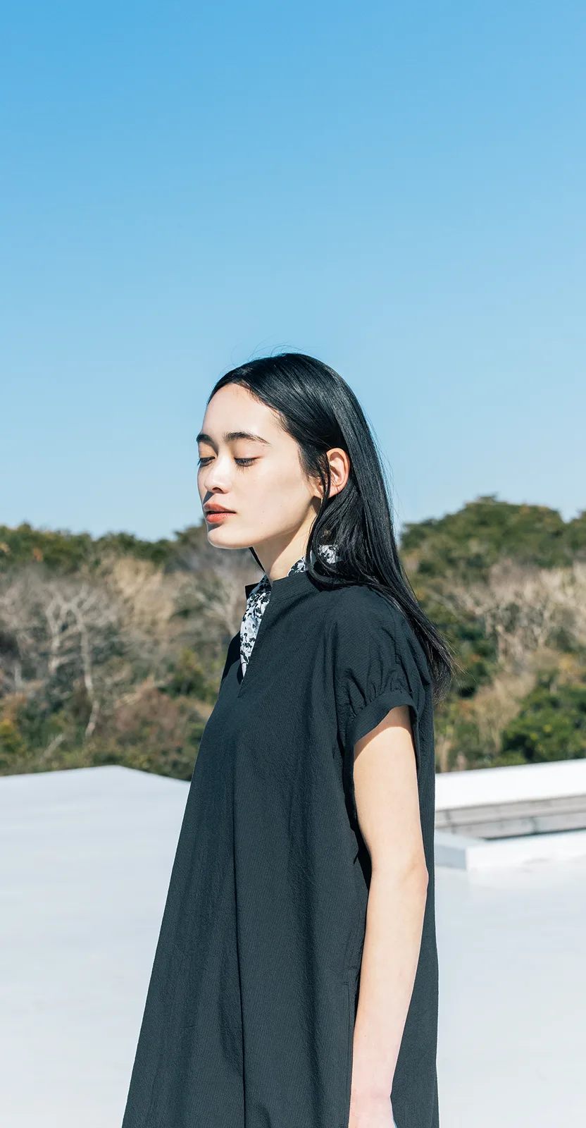今回の〈O2〉のドレスとサロペットが届いたとき、 広げるのがたのしかったです。 軽やかで着やすいのはもちろんなんですけど、 それだけじゃなくて、体を美しく見せてくれる感じが、 すごく伝わってきて。 たとえば、ちょっとしたギャザーの寄せ具合や ハイウエストの位置、長めの丈感。 フレンチスリーブも、 「あ、これ腕がきれいに見える角度なんだな」と思ったり、 「首まわりもすっきり見えるな」と感じたり。 そういった細やかなところに、 浅川さんらしさがすごくあるなぁと思いました。
