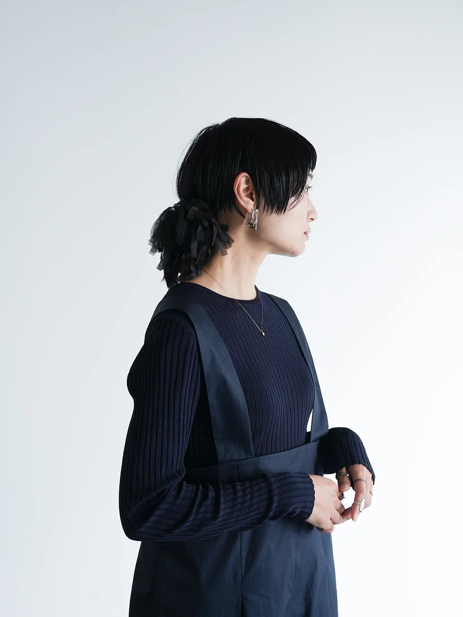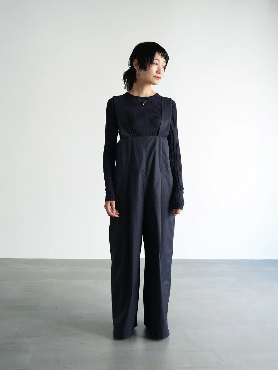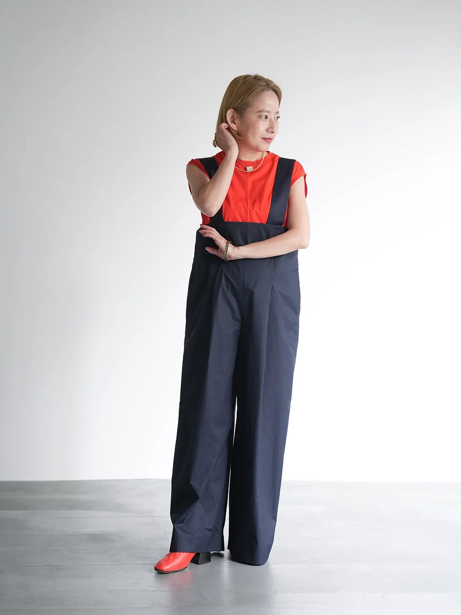 そして最後は、サロペット。 サラッとしていてツヤ感もあり、 「大人が着られる変形サロペット」という印象です。 今回は「大人のサロペットスタイル」をベースに、 私だったらどう着るかな? という目線でスタイリングしました。
