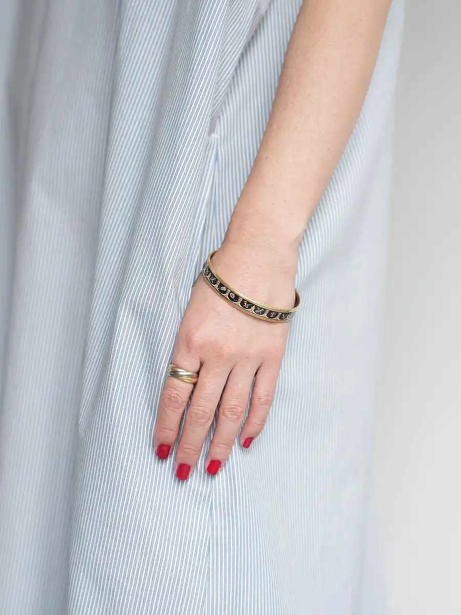 ストライプのワンピースは、 お買い物や友人と気軽に会うような、 ちょっとしたお出かけのシーンをイメージして スタイリングしました。 私がファッションに興味を持つようになったのは、 母の着こなしや、往年の女優さんたちのスタイルがきっかけ。 だからコーディネートを考えるときも、 今の気分を取り入れつつ、 どこかクラシカルな装いが好きで、 それがヒントになったりもします。