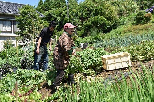 おばあちゃんの案内で、一同、収穫に向かいます。