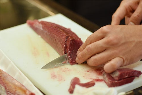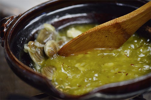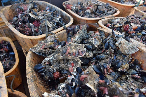ムール貝、ホヤなどをていねいにとりのぞいて、