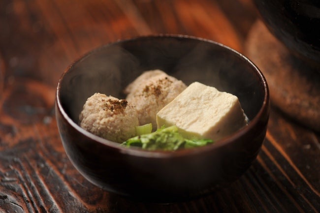 (かかっている調味料は、京都の原了郭の黒七味です。)