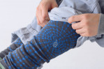 濃いグレー色のレッグウォーマーなので、 ふだん着として使いやすいのではないでしょうか。 ブーツから少し見せたりしても、かっこいいですね。 ときどき気分を変えて、 裏返しで履いていただくのもオススメです。