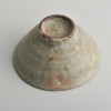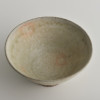つやをおさえた灰釉の、うすみどりの地に、淡い桃色がほんのりうかびあがっています。かたちはほかのごはん茶碗とかわりませんが、こちらは、やさしく品のよい面差しです。ごはんにも、ちょっと気取ったお料理にも、ふところ深く、こたえてくれそうです。