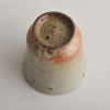 おだやかなグレーの釉薬の下から、土にふくまれる鉄分が、点、点、と顔をのぞかせます。窯の炎が引き出した、あかね色。お茶の時間が待ち遠しくなる、湯呑です。