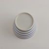 磁器らしいすっきりとした白に、ブルーの線がさわやかです。そばちょこという名にこだわらず、お茶でもコーヒーでも、小鉢としても、使い方はいろいろ。シャープな印象ですが、わずかなふくらみがあり、てのひらになじみます。「独楽絵」とは、ぐるりと何本も線を入れた模様のこと。伝統的なのにモダン。ボーダーのTシャツのように、出番が多くなりそうです。