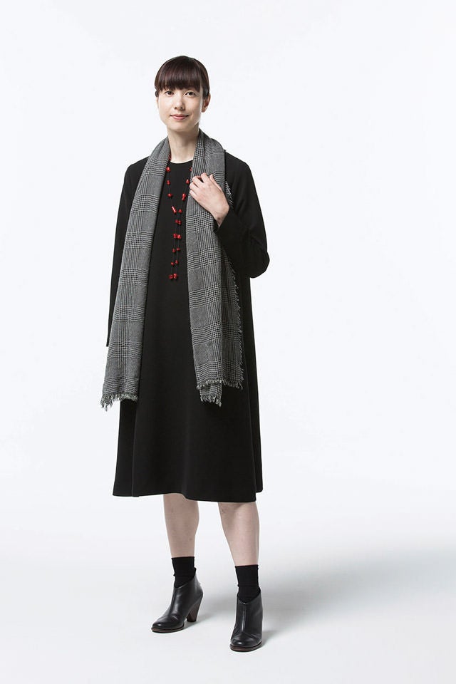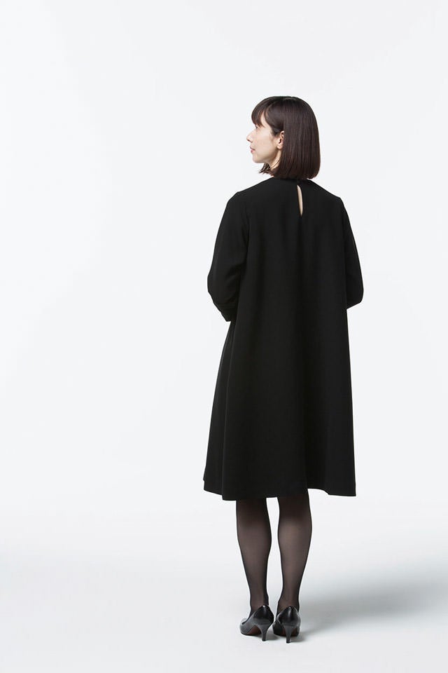 うしろ襟ぐりに長めのスリットとひとつボタン。