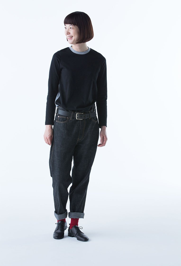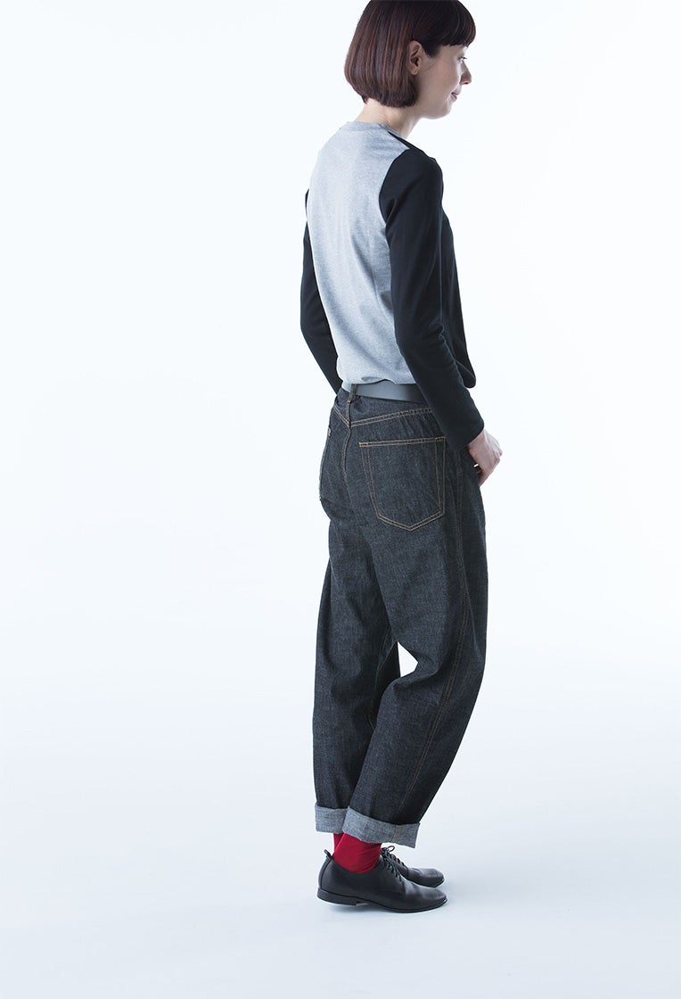 股上が深めで腰回りはゆったり、