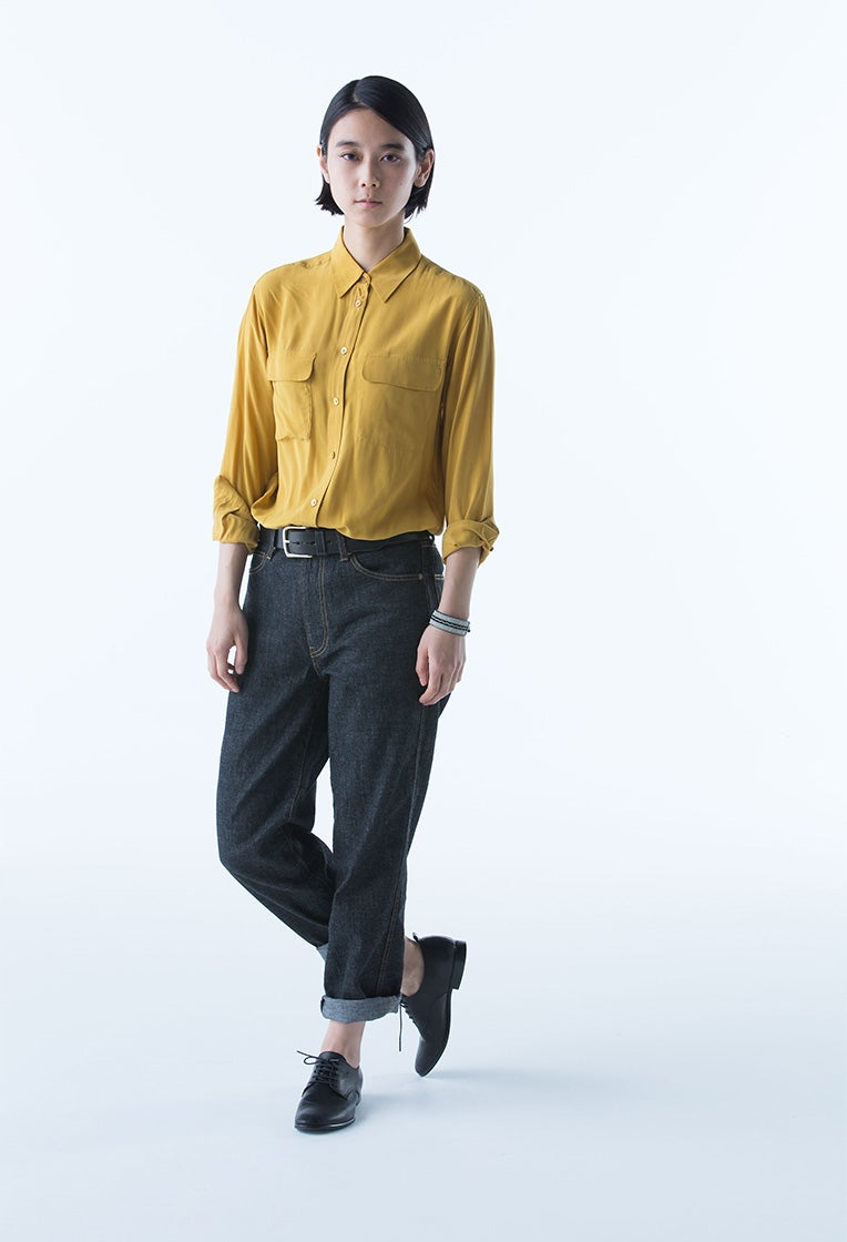 裾に向かってすぼまり気味の定番スタイル。