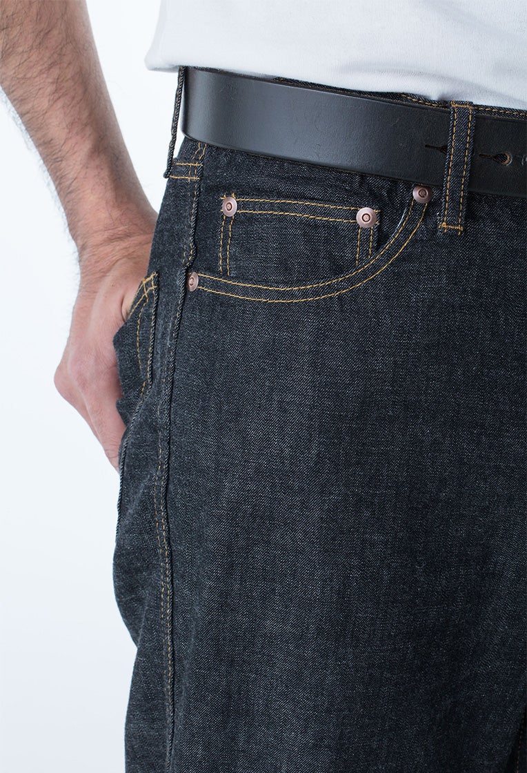 タテ糸が黒、ヨコ糸が白の本格的なデニム生地を、