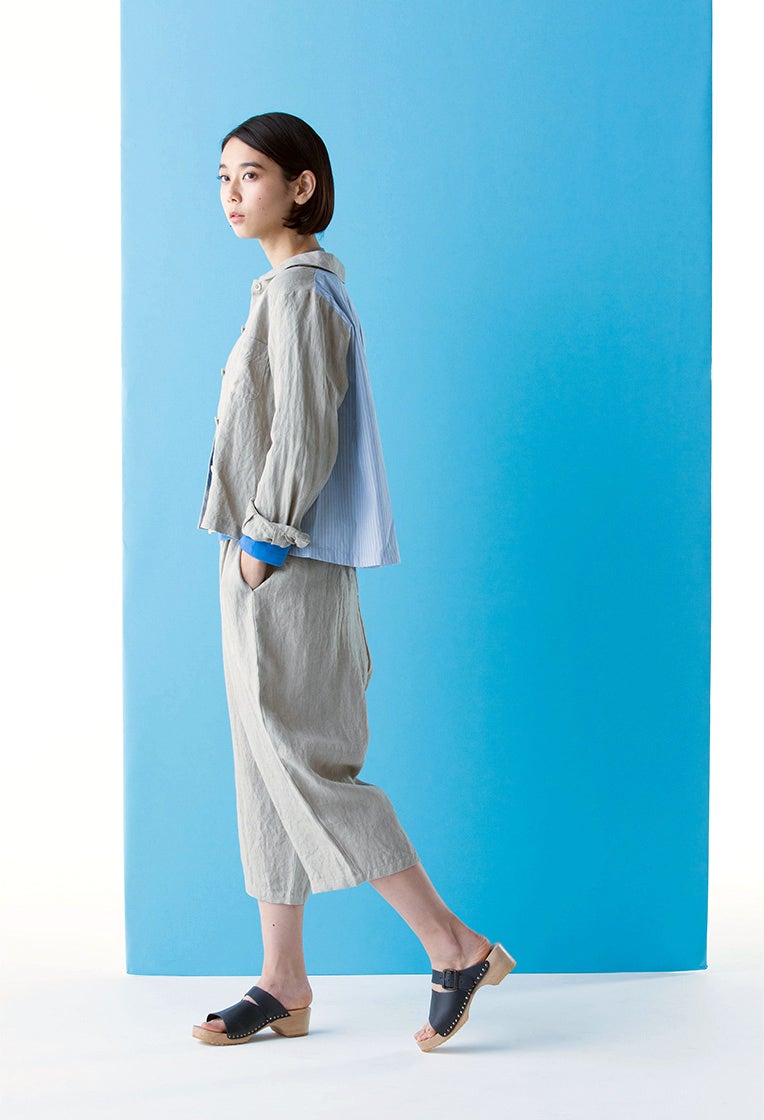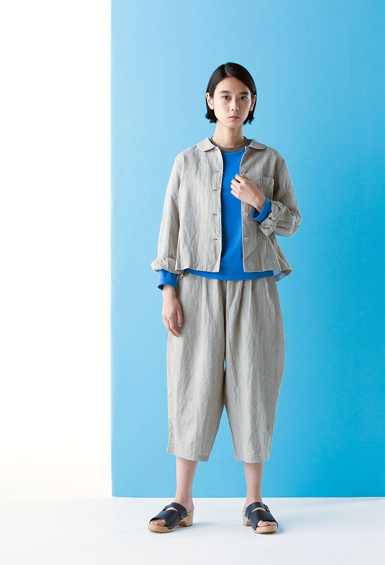 麻とコットンのシャツブルゾンと、